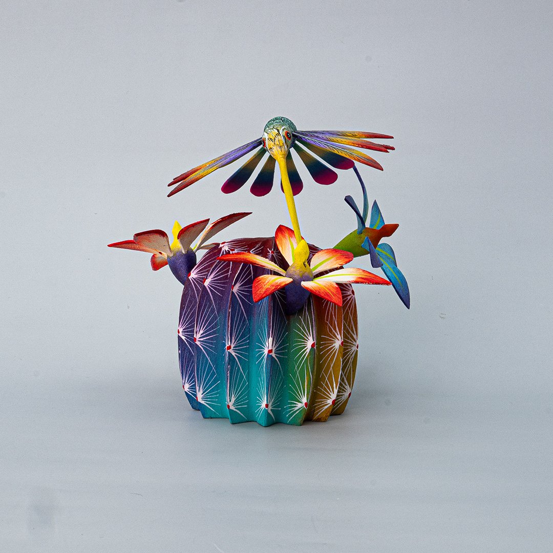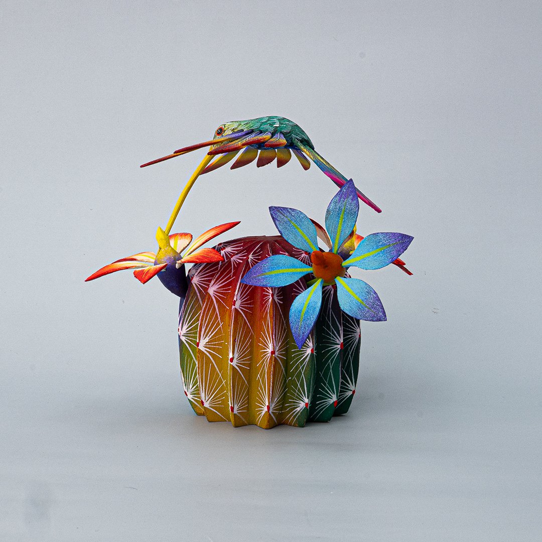 Descubre el encanto artesanal de nuestra Biznaga con Colibrí, una pieza única elaborada cuidadosamente en madera y decorada completamente a mano, perteneciente a nuestra cooperativa de diferentes artesanos (Víctor Aguilar). Cada pieza destaca por la forma delicada de la biznaga, sus espinas pintadas con precisión y el pequeño colibrí que se posa sobre ella, lleno de color y movimiento, lo que la convierte en un accesorio ideal para decorar cualquier espacio.