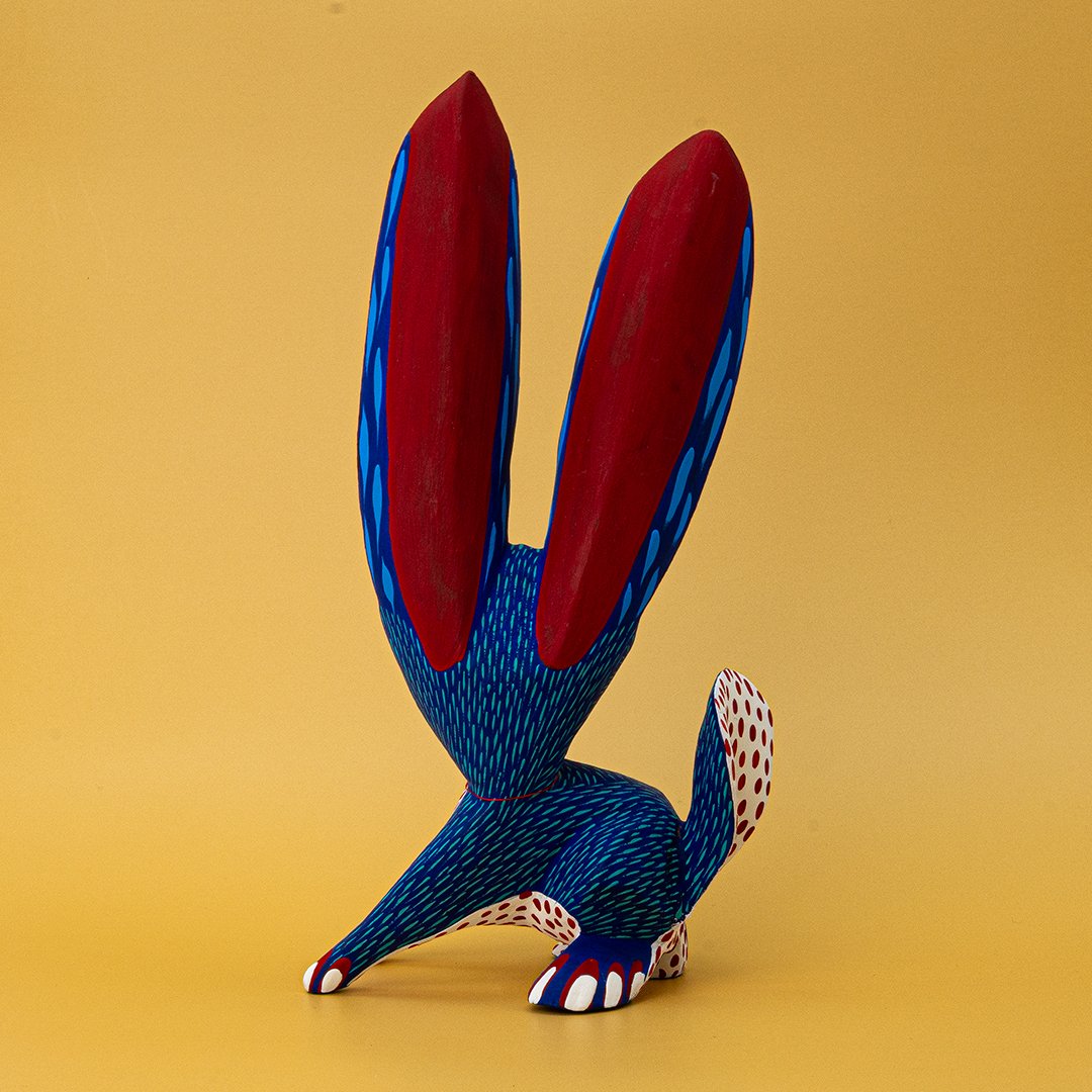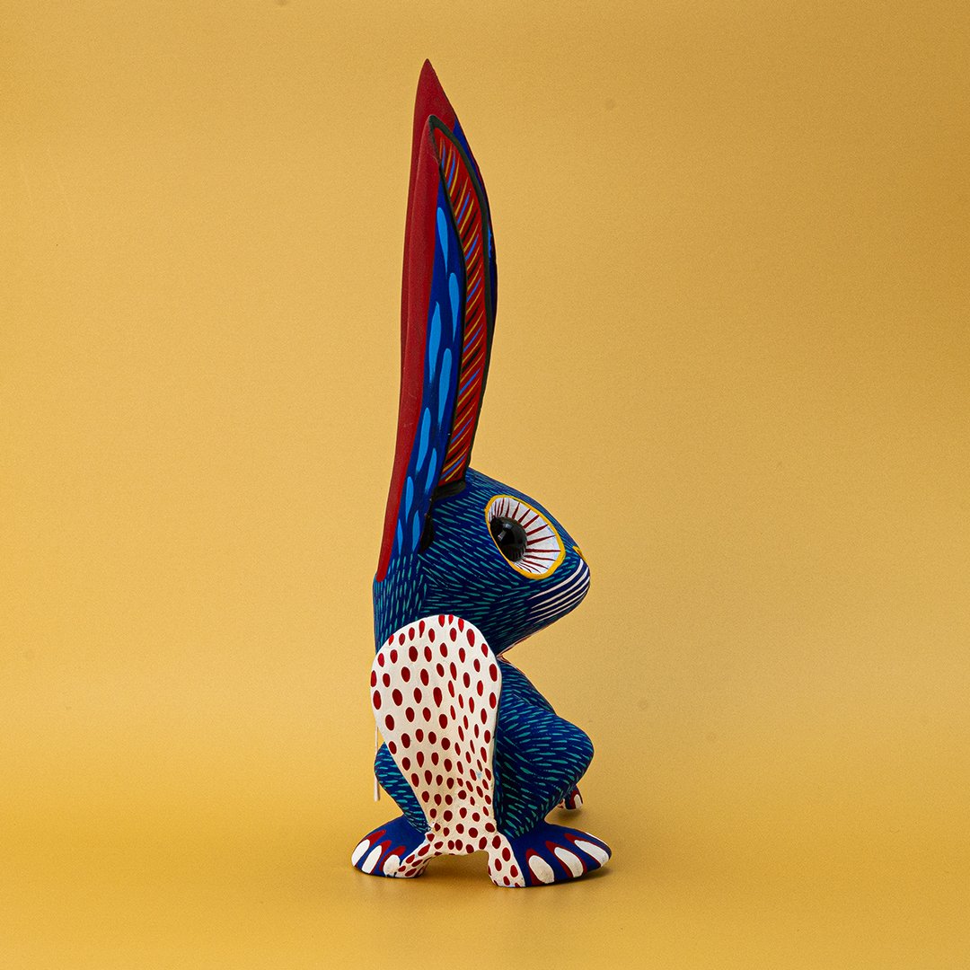 Nuestro Conejo Orejón de madera es una figura artesanal que celebra la creatividad y la imaginación. Tallado a mano por los artesanos de nuestra cooperativa en este caso el artesano (Arsenio Morales), cada ejemplar es cuidadosamente decorado y pintado a mano, resaltando sus largas orejas, sus formas suaves y su carácter encantador y expresivo.