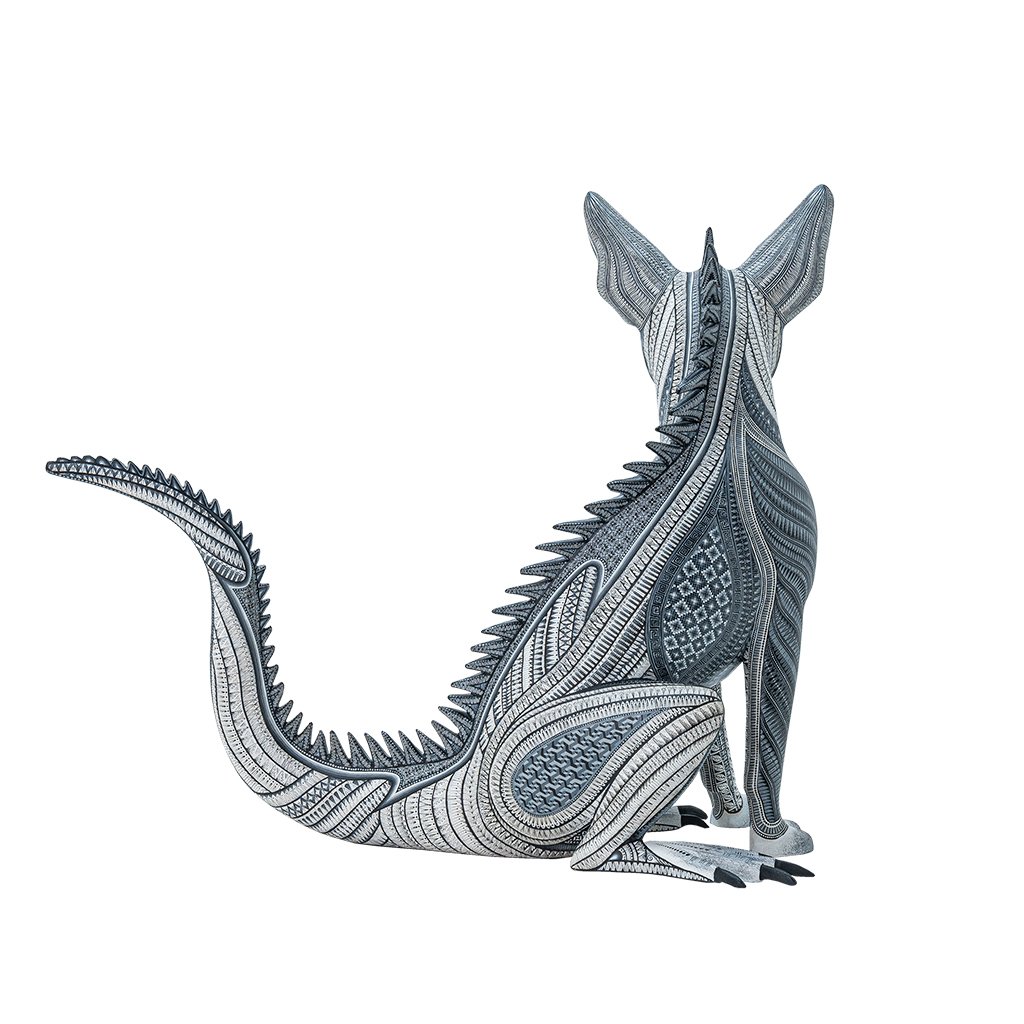 Tallado a mano en madera por artesanos expertos, este nahual de fusión entre perro e iguana representa la unión armoniosa entre la lealtad y la humildad del perro con la fertilidad y fecundidad de la iguana, símbolo ancestral de renovación y vida.