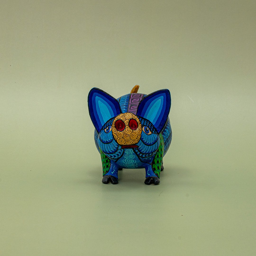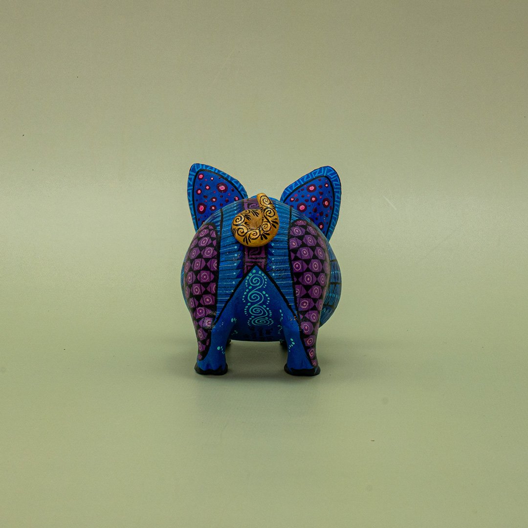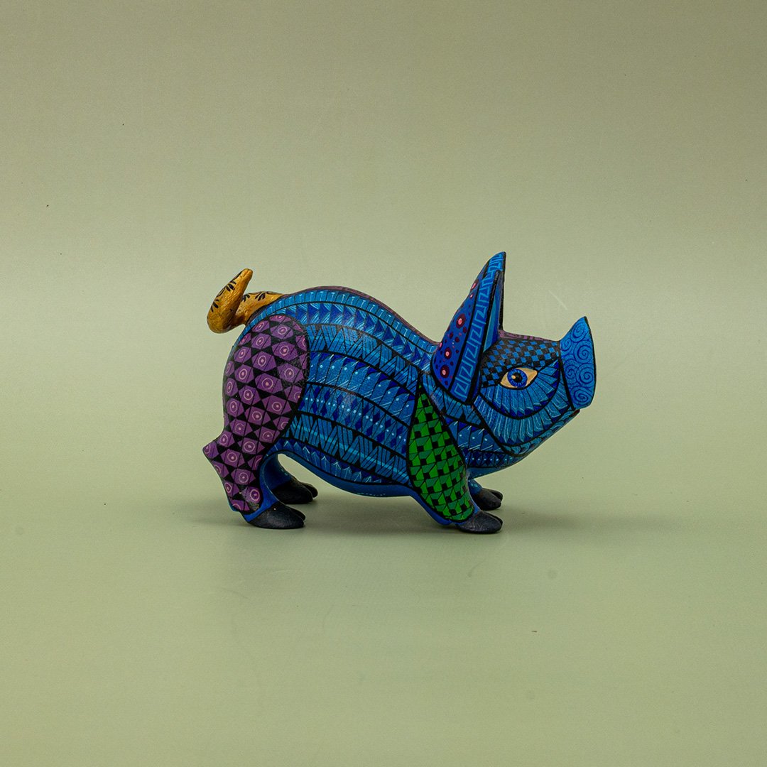Este encantador cerdito es una verdadera obra de arte perteneciente a nuestra cooperativa de diferentes artesanos, elaborada a mano por talentosos artesanos oaxaqueños que dan vida a cada pieza con dedicación y detalle. Tallado cuidadosamente en madera y decorado con colores vibrantes y patrones tradicionales, cada cerdito es único, reflejando la rica herencia cultural y la creatividad del arte popular de Oaxaca.