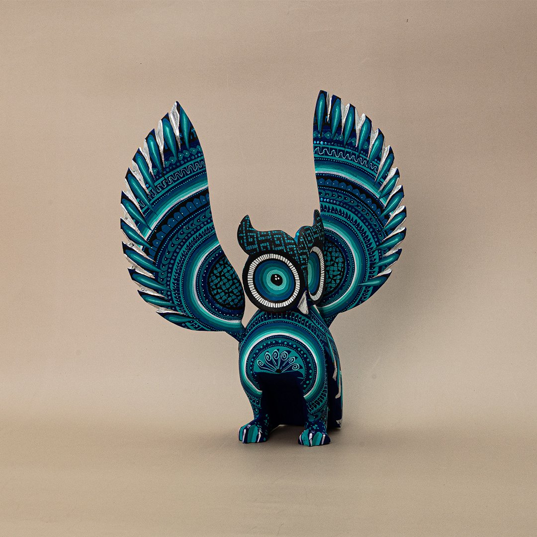 Encanto y tradición se unen en este Búho, pintado completamente a mano por artesanos oaxaqueños perteneciente a nuestra cooperativa de diferentes artesanos. Cada detalle refleja paciencia, talento y colorido, convirtiéndolo en una pieza llena de vida. El búho simboliza sabiduría y protección, ideal para decorar tu hogar o regalar algo auténtico y con significado.