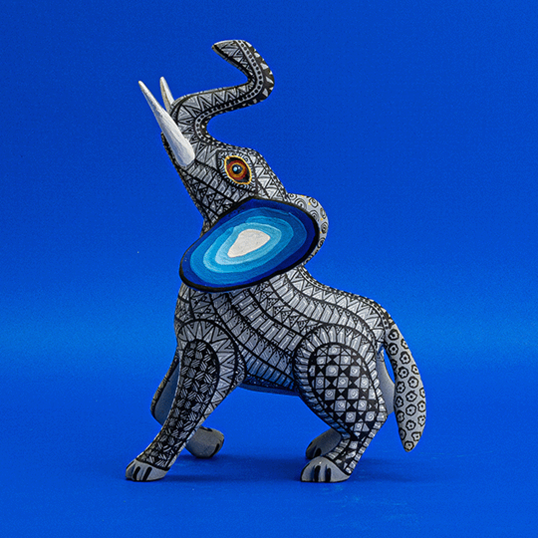 Descubre el encanto artesanal de nuestro Elefante , una pieza única elaborada cuidadosamente en madera y decorada completamente a mano, perteneciente a nuestra cooperativa de diferentes artesanos (Leticia Domínguez Valeriano). Esta elefante destaca por su elegante silueta, su característico colmillos que posee y sus colores vibrantes finamente pintados, lo que la convierte en un accesorio ideal para decorar cualquier espacio.