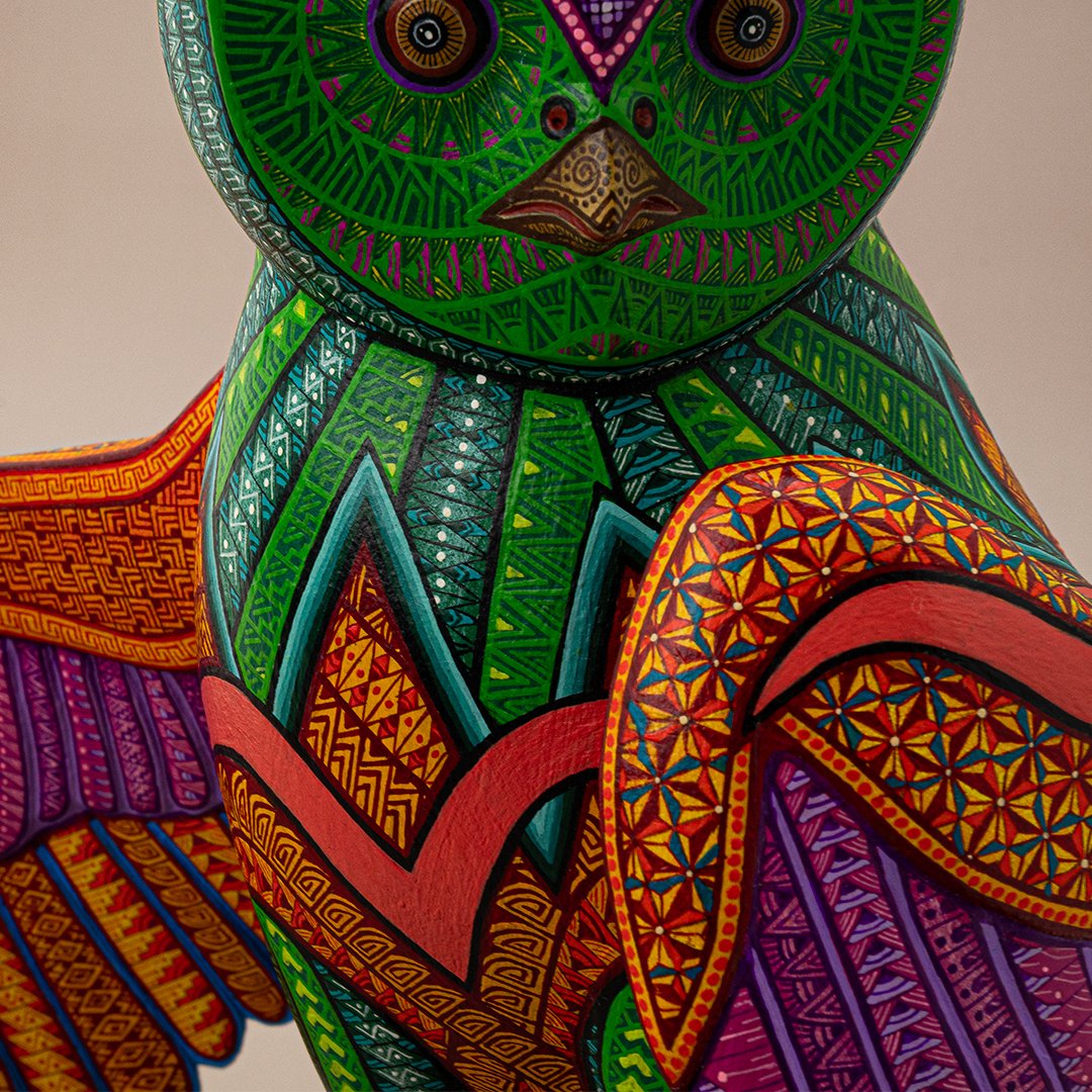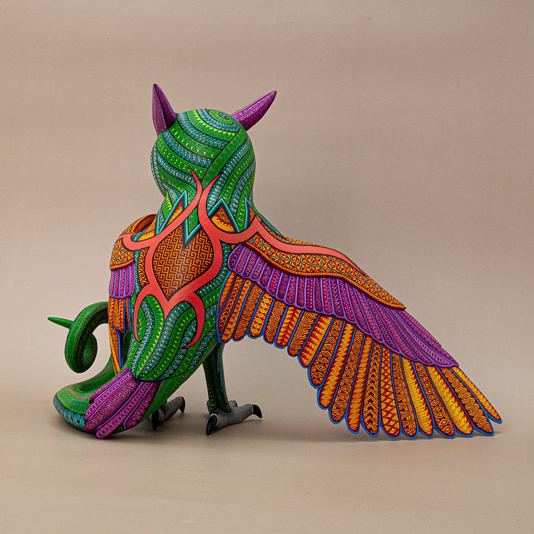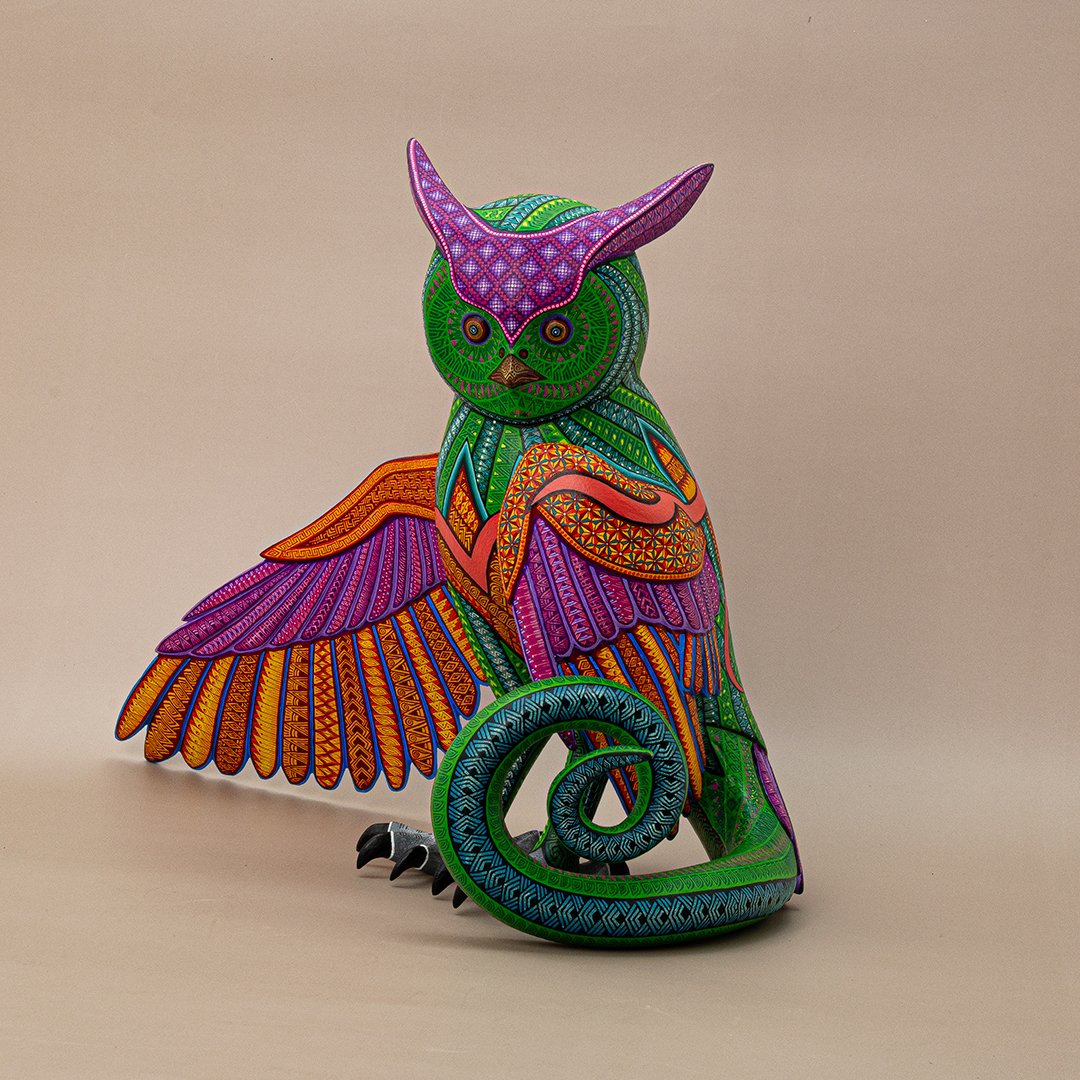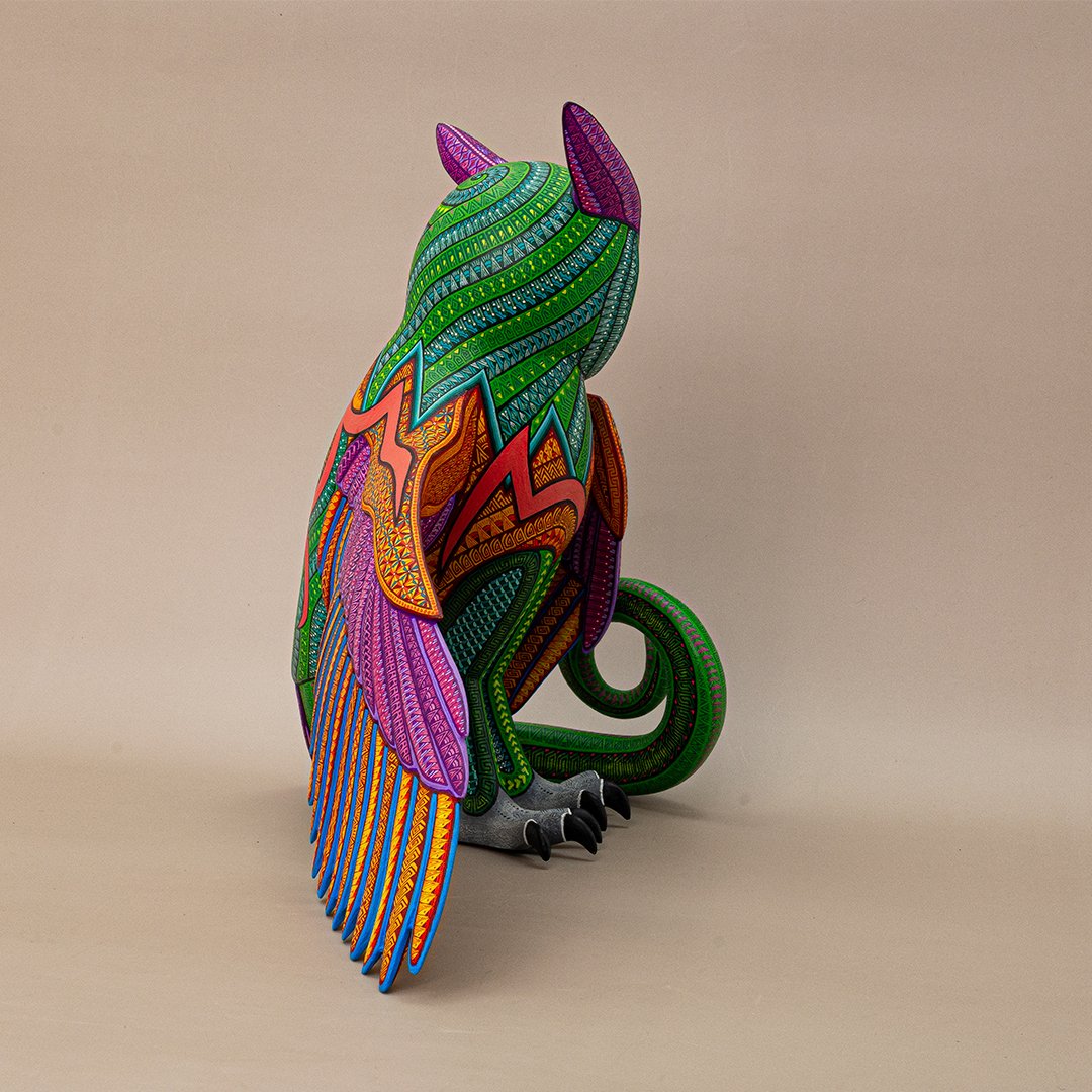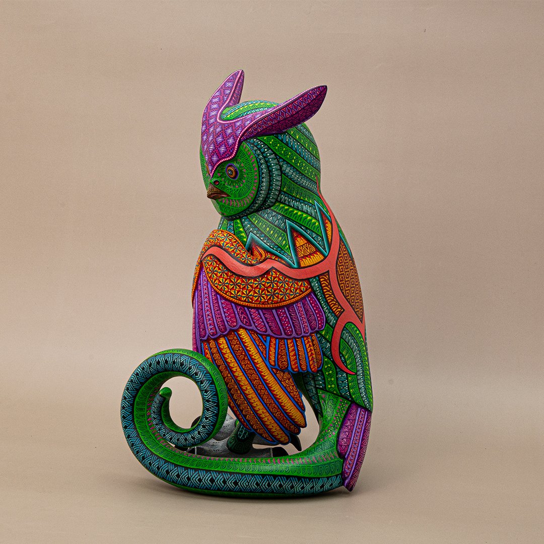 Esta extraordinaria figura combina la sabiduría nocturna del búho con la energía terrenal de la iguana, dando origen a un ser que simboliza curación profunda, fertilidad y fecundidad. Es un guardián místico que representa el equilibrio entre la intuición, la regeneración y la renovación constante de la vida.