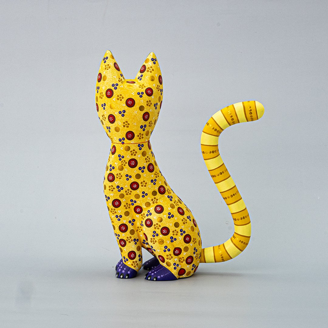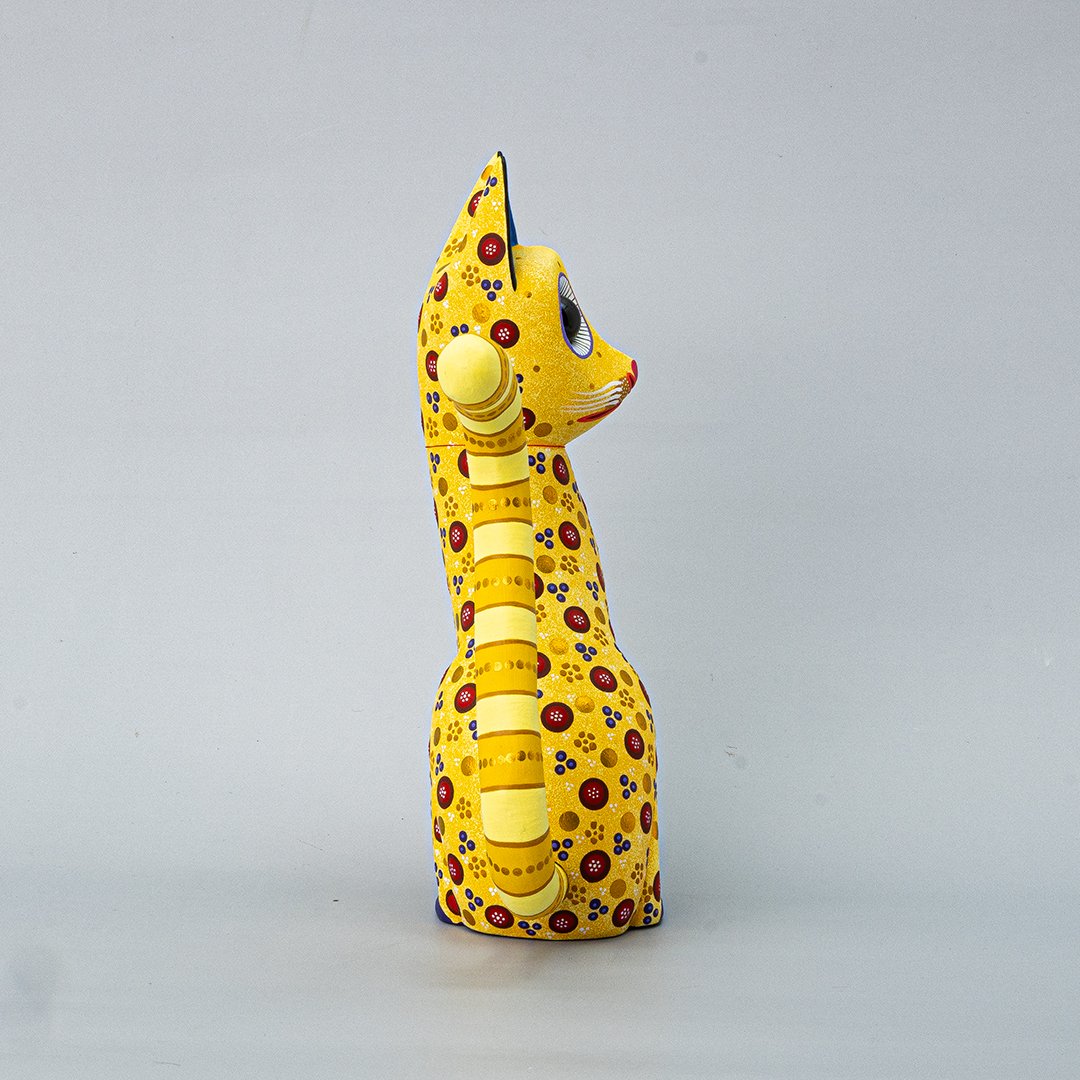Perfecto para quienes aprecian el arte tradicional, los objetos con historia y las piezas irrepetibles, este gato de madera aporta un toque cálido, mágico y lleno de personalidad a escritorios, repisas, habitaciones o colecciones artesanales. Su acabado artesanal garantiza que no haya dos iguales.